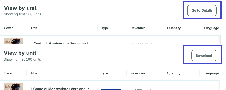 - View by Unit/Transactions : Distinguish sales by title or by single transaction