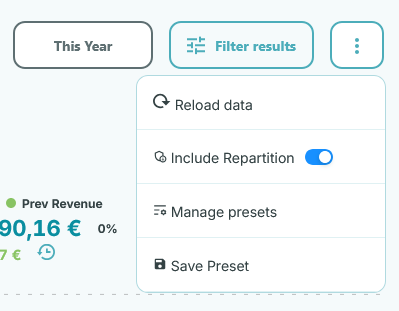 Filter combinations can be saved and reused at any time. To save a filter, click the three dots next to the active filter. To reuse it, go to "Manage Presets."